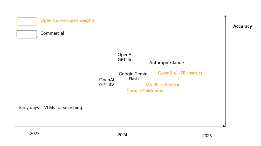- 后期交互与VLM:基于张量的重排序(如ColBERT、ColPali)提升排序效率,视觉语言模型(VLM,如PaliGemma)支持多模态文档分析,Infinity数据库实现多向量索引。