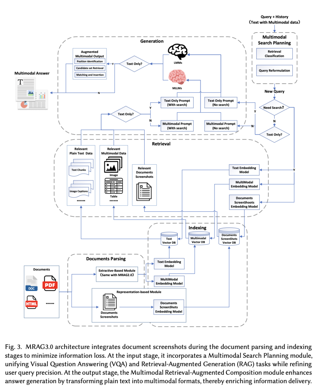 - 提出MRAG 1.0到3.0的演进,详述核心组件与技术挑战。多模态RAG的三个版本。