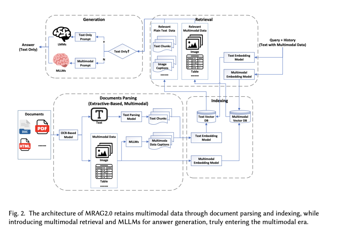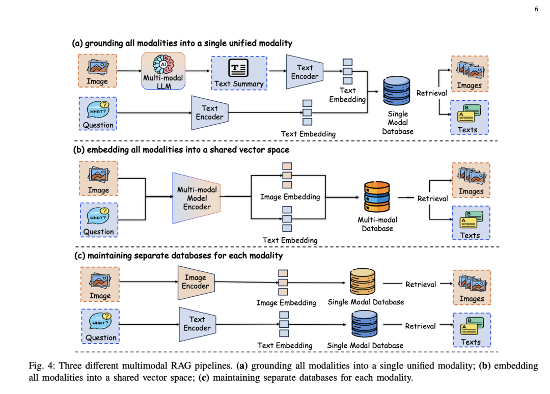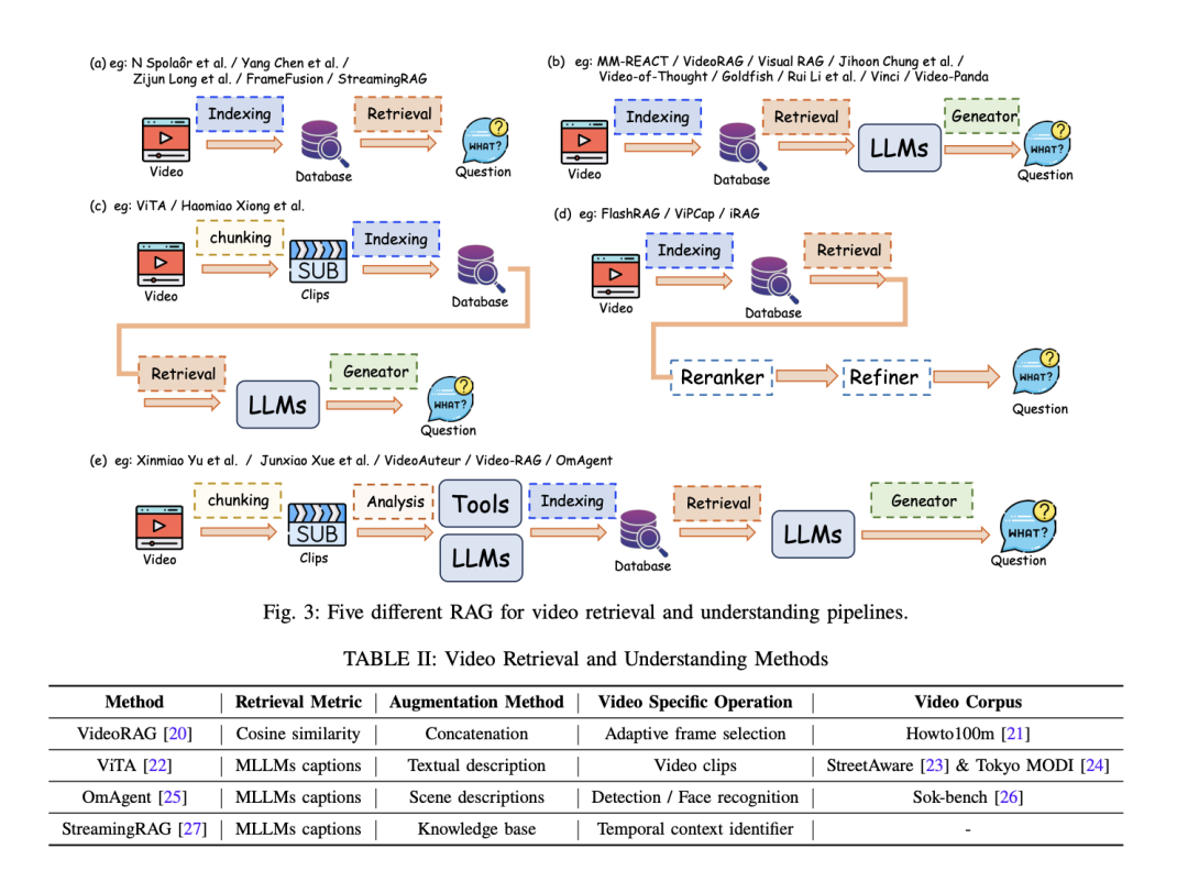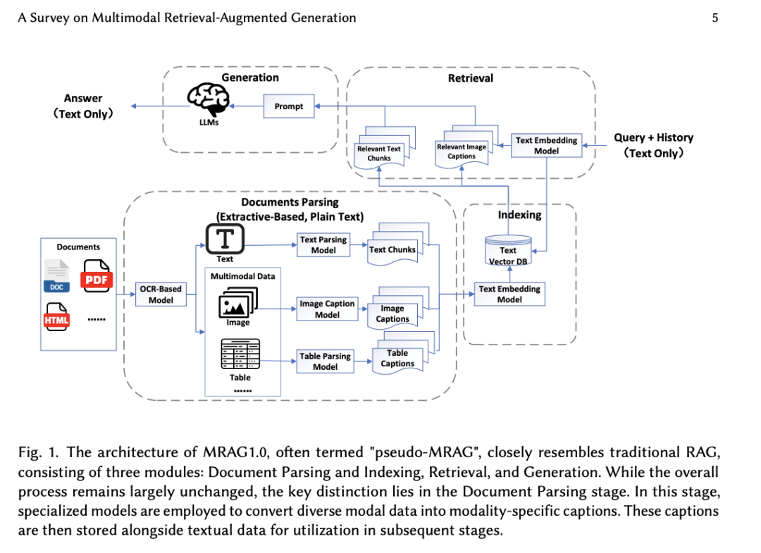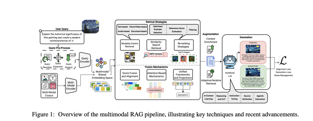 检索策略,如模态中心检索、相似性搜索和重排序,增强文档选择,而融合机制通过分数融合或基于注意力的方法对齐并整合来自多种模态的数据。