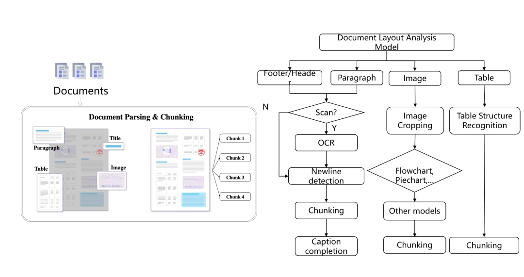 - 多模态文档解析:RAGFlow的DeepDoc模块率先实现非结构化文档的语义分块,支持PDF、PPT等复杂格式解析,开源社区(如MinerU、Docling)跟进,推动了文档智能的普及。第二代基于生成式AI的OCR模型(如Nougat、OCR 2.0)显著提升泛化能力,M2Doc通过BERT集成增强语义边界识别。