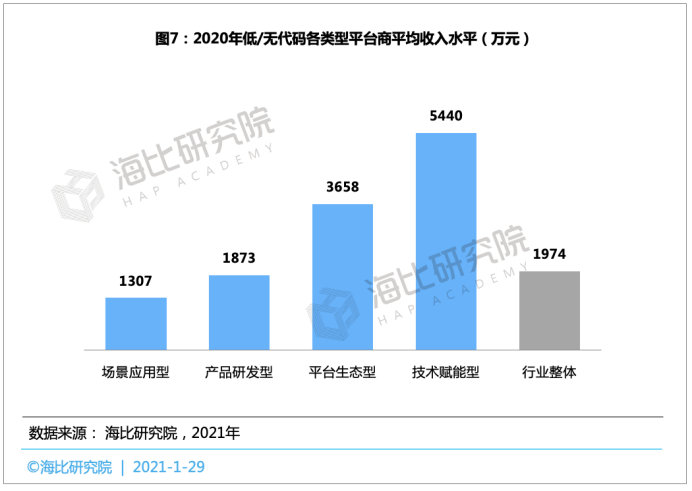 从各类型平台商的年均收入规模来看,技术赋能型收入平均年收入最高。其次是平台生态型,再次是产品研发型和场景应用型。因此,随着金蝶、致远互联等平台生态型厂商持续深耕,市场格局会发生变化。