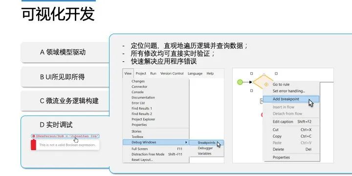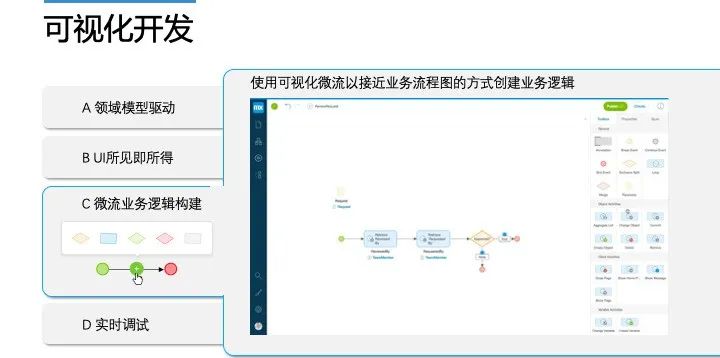 可视化建模——使用Mendix低代码平台,可以使业务分析师可视化地构建应用程序,并与专业开发人员一起在共享的环境中工作,通过持续的实时反馈,在通用模型上合作。任何问题都能被快速检测并得到解决,从而确保应用在第一版中即可满足业务和客户的期望。