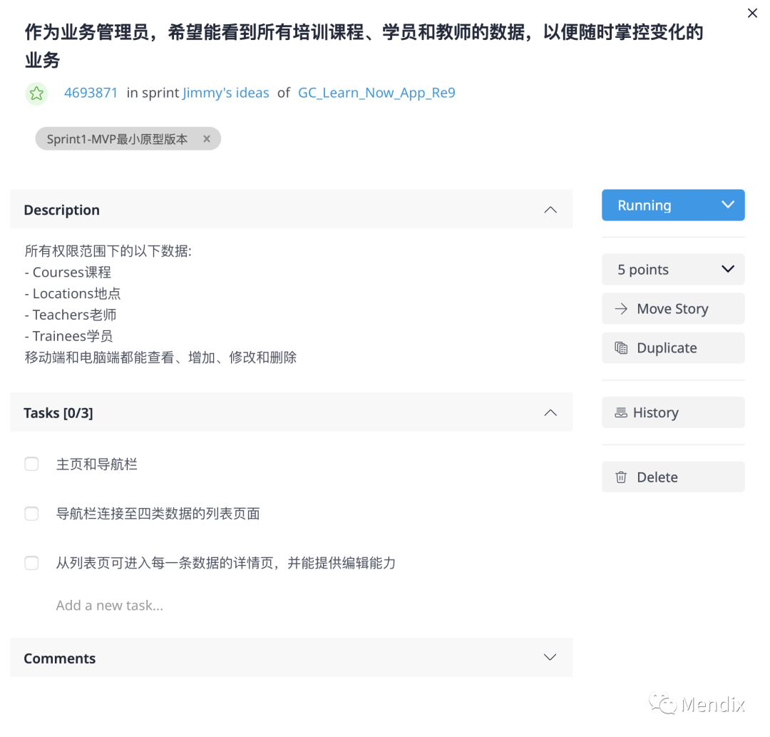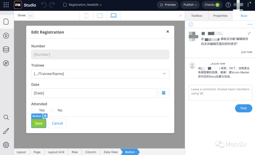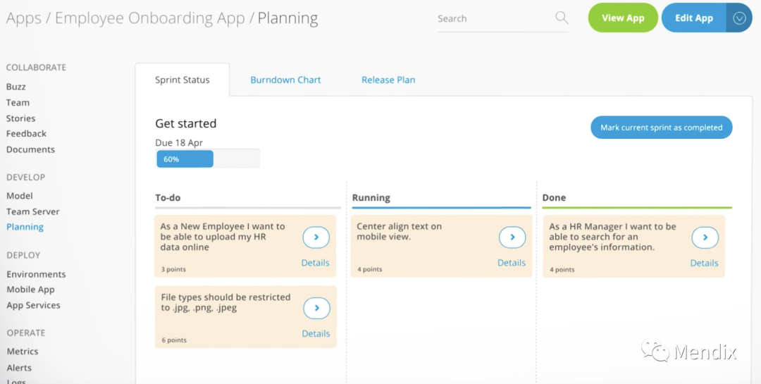 Mendix开发人员门户为扩展团队提供了一个集中的空间——开发团队、业务利益相关者和关键用户都可以访问此空间,团队可以评论用户故事和反馈项目,以便快速回答问题并进一步指定详细信息。在每个用户故事和反馈项的上下文中都可以使用Developer Portal Buzz,并且在项目级别上,无论是在桌面上还是通过Mendix移动应用程序,都可以在portal中直接查阅。