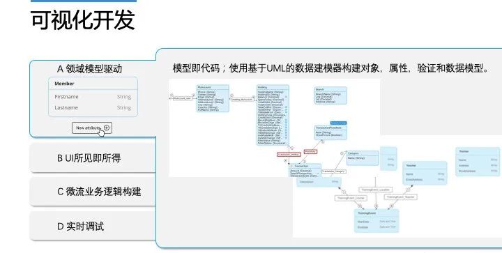 Mendix通过模型驱动开发+可视化开发工具,构建用于UI、数据、逻辑和导航的领域模型。通过在运行时解释生成的模型,从而保持模型与应用程序之间的联系,Mendix可以防止产生低可读性难以维护的历史代码。此外,直接模型执行消除了代码生成开销,并通过在运行时适应实时更改,受控扩展和动态监视分析而提供了明显的优势。