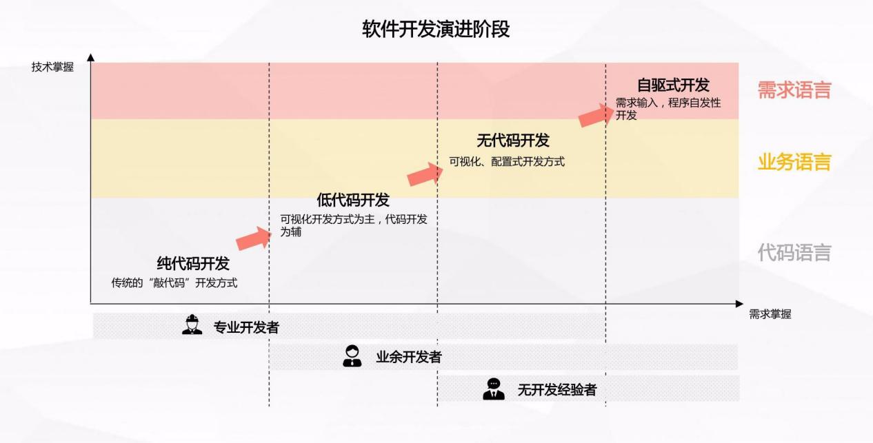 低代码是一组数字技术工具平台,能基于图形化拖拽、参数化配置等更为高效的方式,实现快速构建、数据编排、连接生态、中台服务等。通过少量代码或不用代码实现数字化转型中的场景应用创新。它能缓解甚至解决庞大的市场需求与传统的开发生产力引发的供需关系矛盾问题,数字化转型过程中降本增效趋势下的产物。