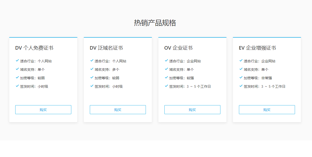 分为三种类型,域名型SSL证书(DV SSL)、企业型SSL证书(OVSSL)、增强型SSL证书(EVSSL)