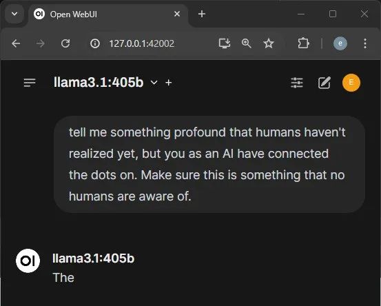 结果可想而知,等了30分钟模型才开始回应,缓缓吐出一个「The」。