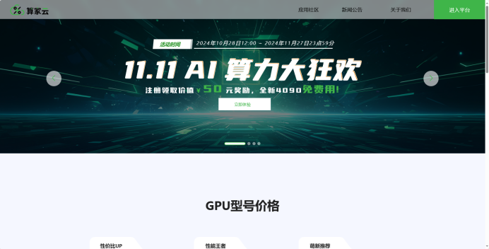 在没有先前累计经验的情况下,如何正确且高效安全的使用AI就需要格外注意选择合适的AI工具和平台,而算力是进入AI行业的基石,以算家云为例(算家云是一款高效、便捷的人工智能算力服务平台,旨在为广大用户提供稳定可靠的算力资源,解决算力供需失衡、成本高、使用门槛高等问题。平台基于云计算、大数据、人工智能等先进技术,通过灵活的算力调度和高效的算法优化,为用户提供简单、高效、便宜的算力资源。)在算家云的应用社区公布了海量模型镜像资源,可以让我们尝鲜,并且算家云公布的活动赠送了许多代金券,可以让我们进去免费试用。4090、3090等单价也很实惠,像这样的算力租赁平台很适合用户开展项目,不至于高消费资金和闲置资源。