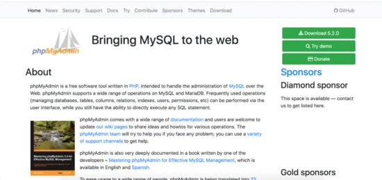 phpMyAdmin 是一个以 PHP 为基础,以 Web-Base 方式架构在网站主机上的 MySQL 的数据库管理工具,可以让使用者通过网页界面管理 MySQL 数据库,也是同类软件中最受欢迎的工具之一,主要是因为它使用起来非常容易,并且完全免费。