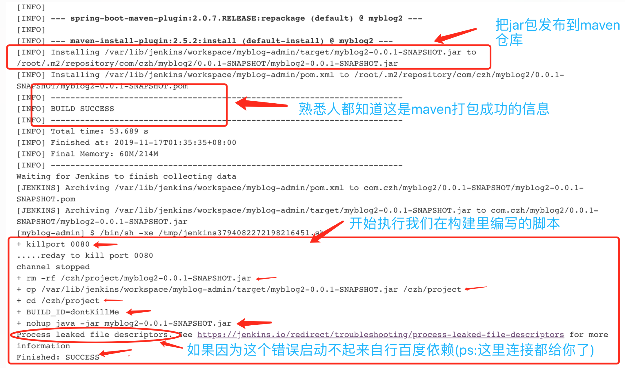 - 最后提示下: 部署不成功一定一定要看控制台信息,看哪里那个步骤出错了对应去修稿