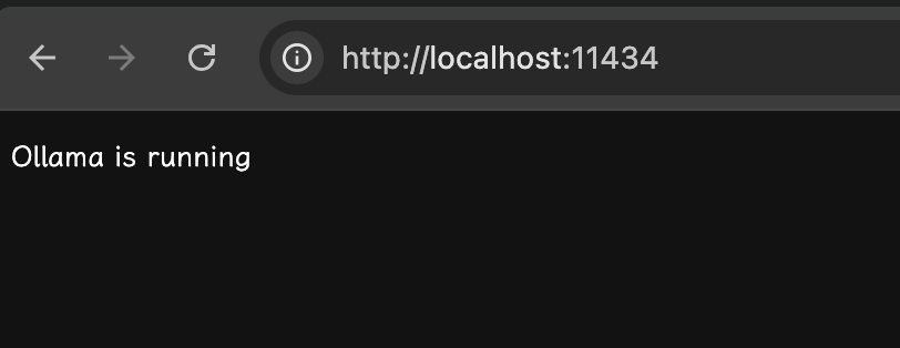 如果页面显示 “Ollama is running”,则表明Ollama已经成功启动并正在运行。若显示无法访问或其他错误信息,可能是端口被占用,需要检查系统中占用 11434 端口的程序并进行处理,或者重新配置 Ollama 的运行端口。