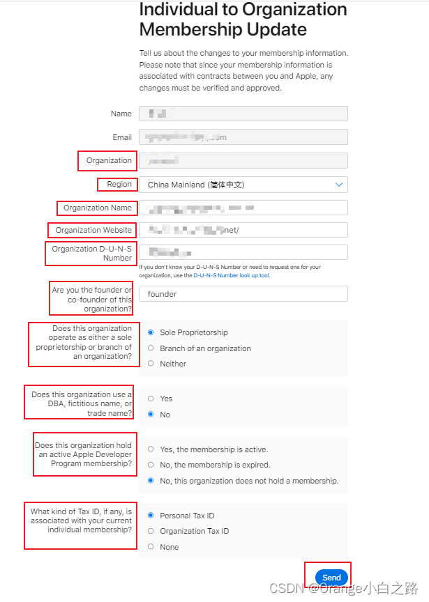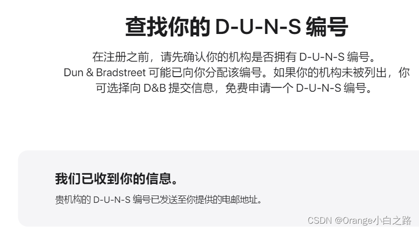 Organization D-U-N-S(组织的邓白氏编码) : 填写用这个公司信息申请下来的邓白氏编码(上面第8步收到的数字编码)