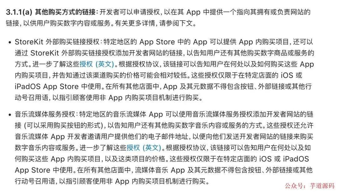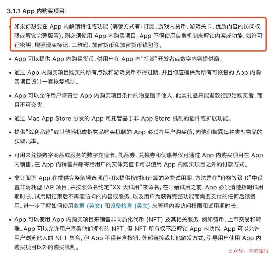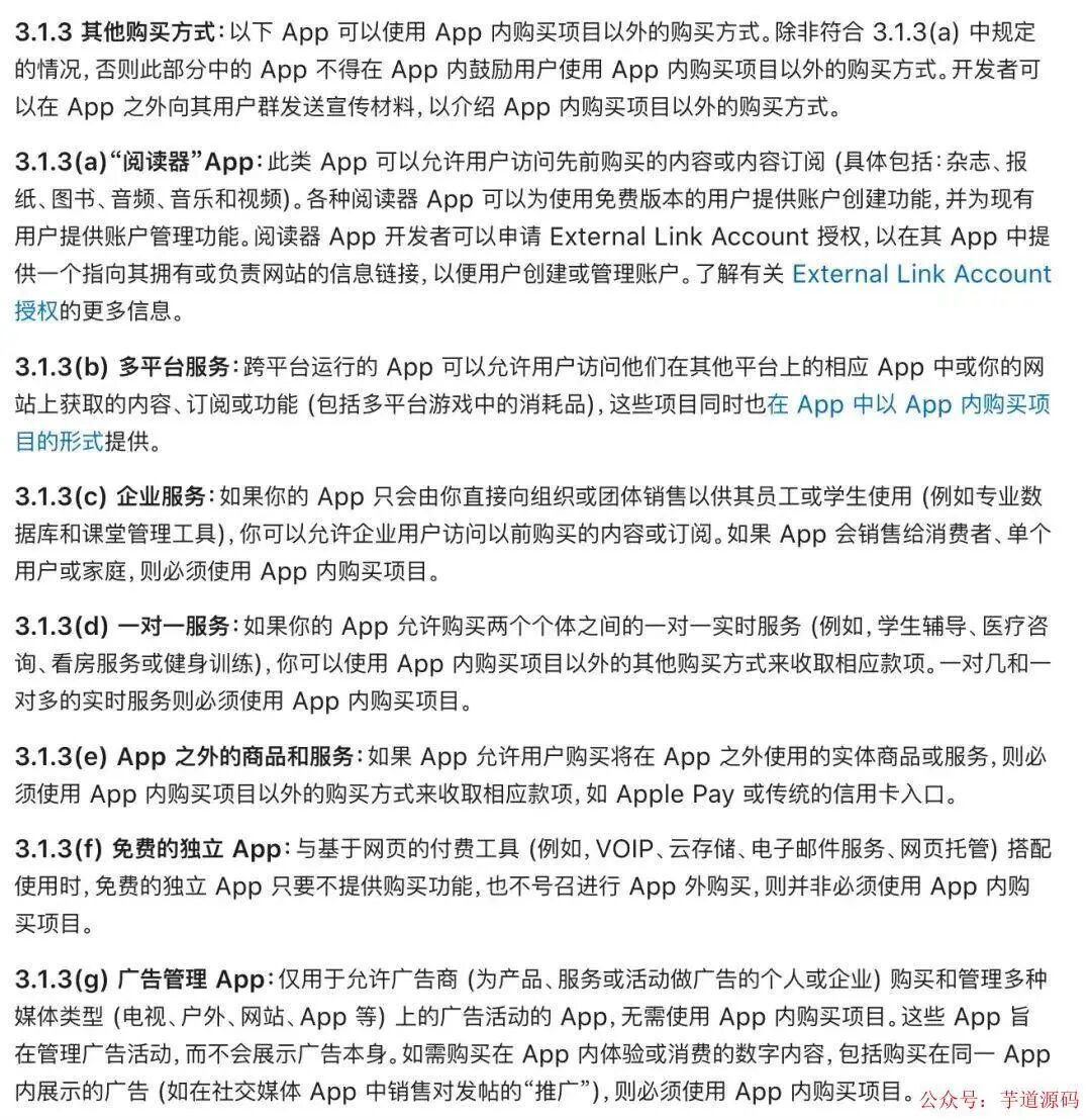 审核指南和上面的协议会比较经常的改版,比如 IAP 之外现在已经有了很多特例,类似在欧盟要求下的 StoreKit 购买方式。