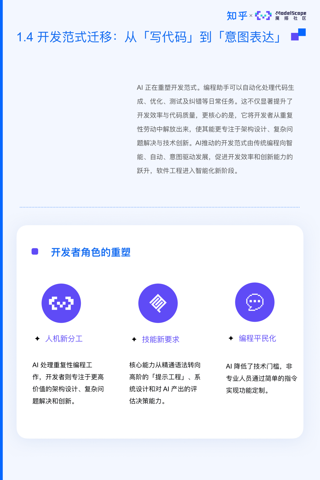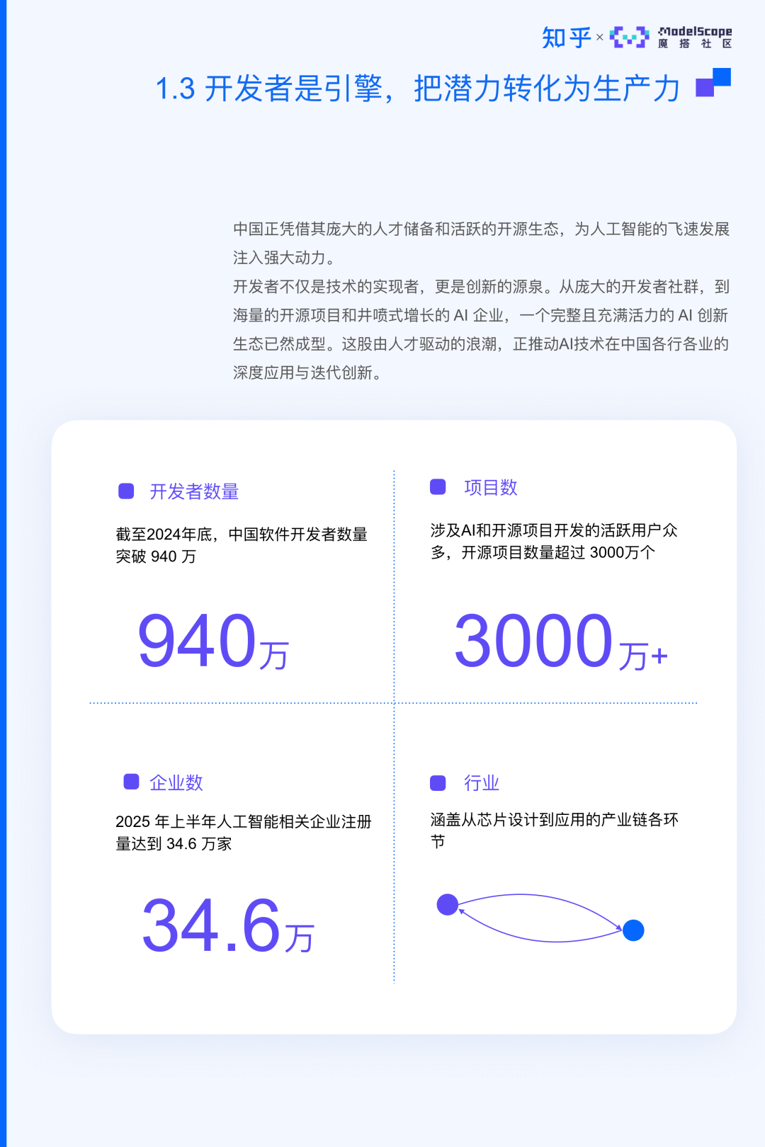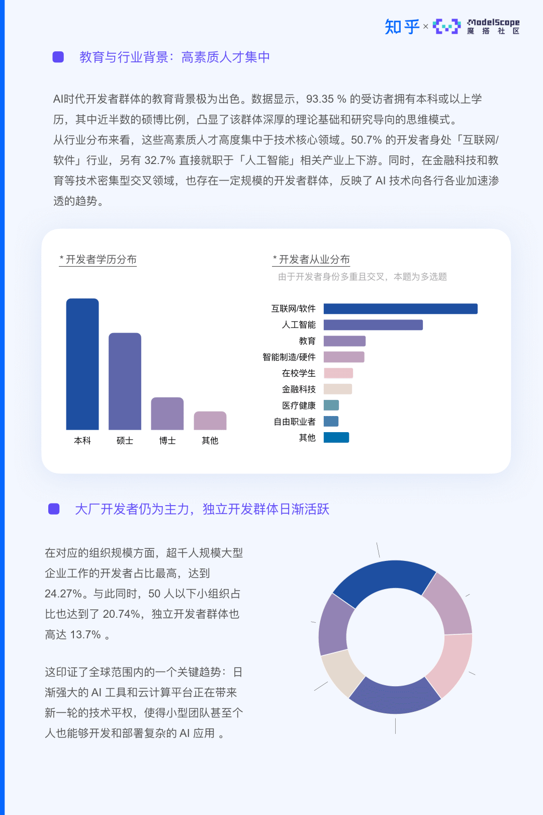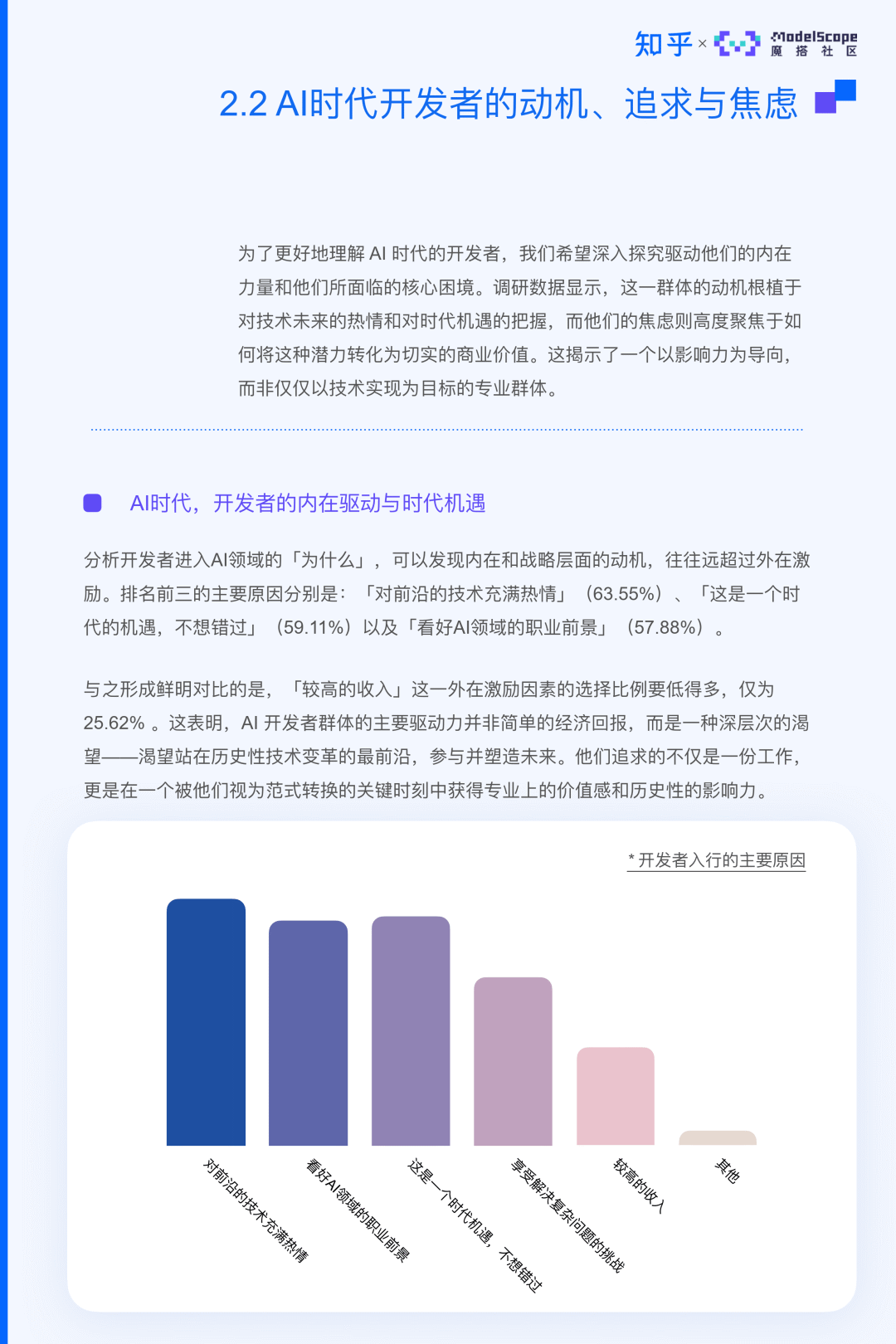 知乎与魔搭社区联合发布的《2025年AI时代开发者生态白皮书》显示,AI技术正重塑开发范式与开发者生态,中国AI市场规模持续爆发,开发者群体成为技术落地与产业创新的核心引擎,开源生态与社区协作则为行业发展提供关键支撑。