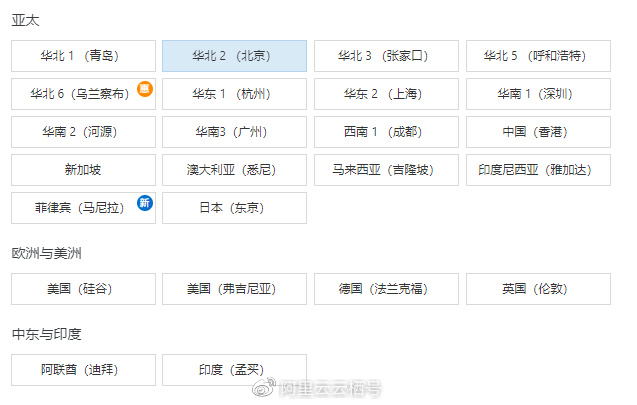地域选择方面,阿里云为我们提供了海内外数十个地域,个人建议要选择距离客户近的地域;如果是自己用,则选择距离自己近的地域。