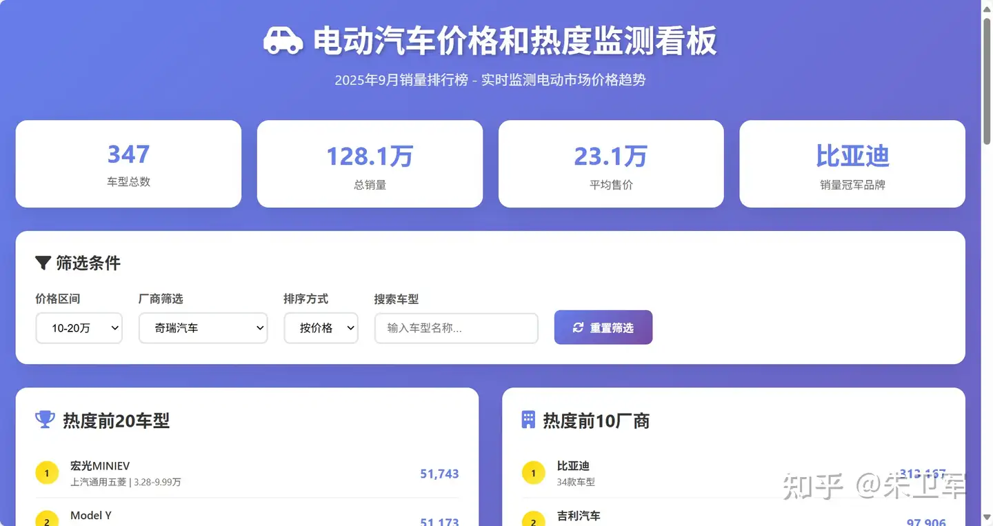 附件是2025年9月电动汽车销量排行榜,里面包含排名、车型、销量、厂商、售价等5个字段,你的任务如下: