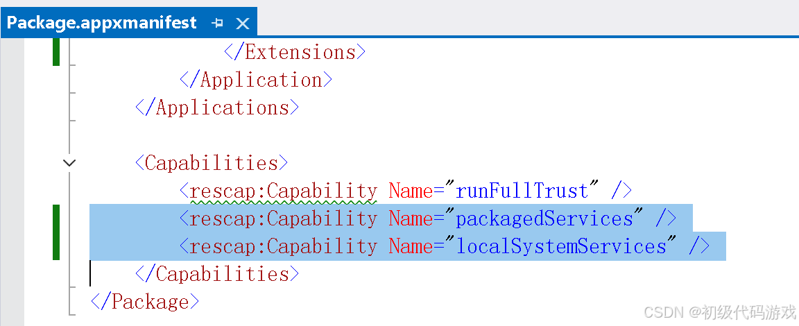 <rescap:Capability Name="packagedServices" />