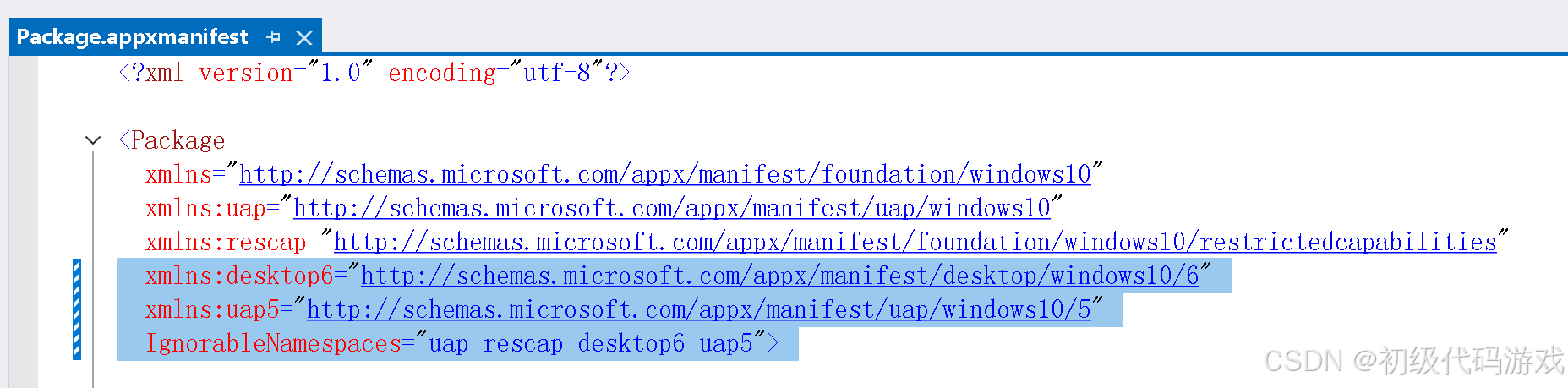 IgnorableNamespaces="uap rescap desktop6 uap5"> -----修改