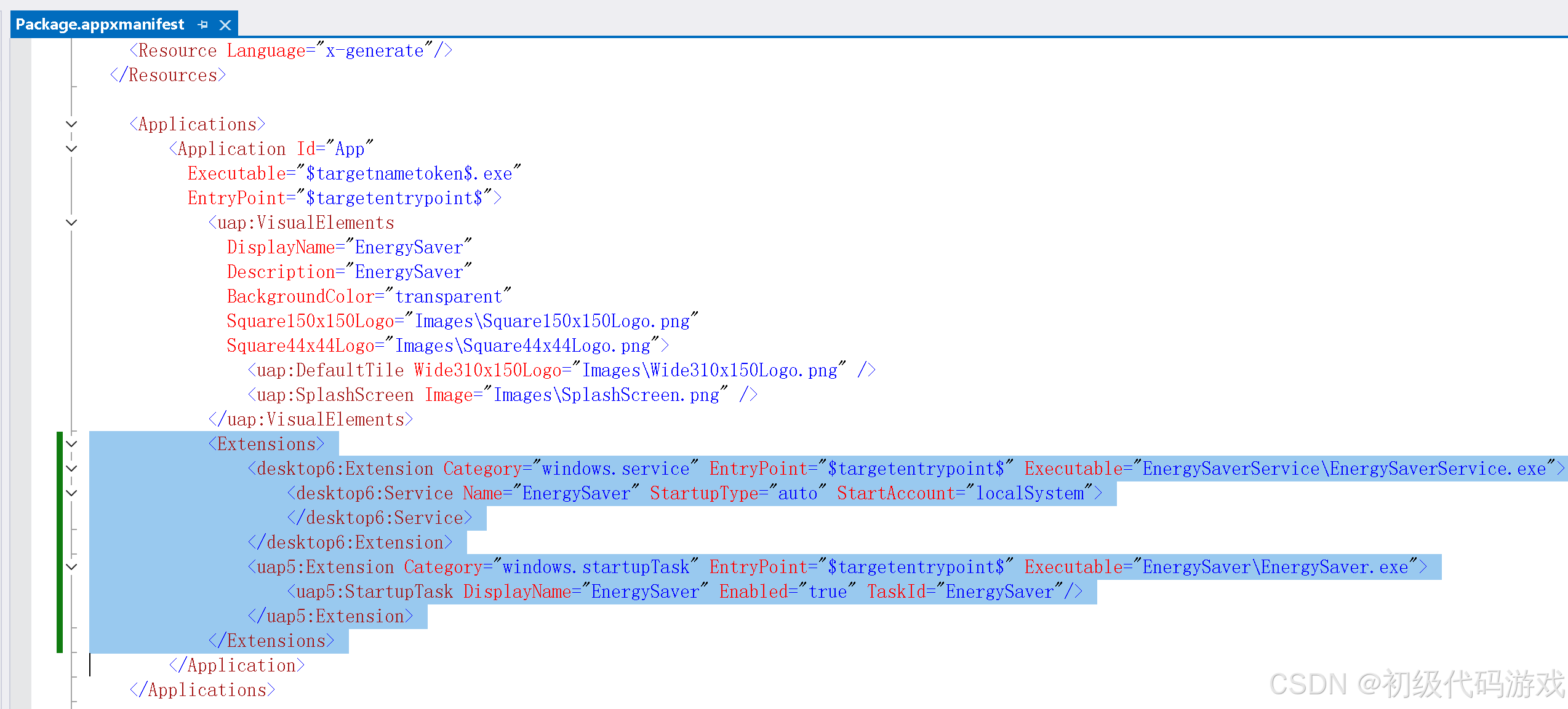<uap5:StartupTask DisplayName="EnergySaver" Enabled="true" TaskId="EnergySaver"/>