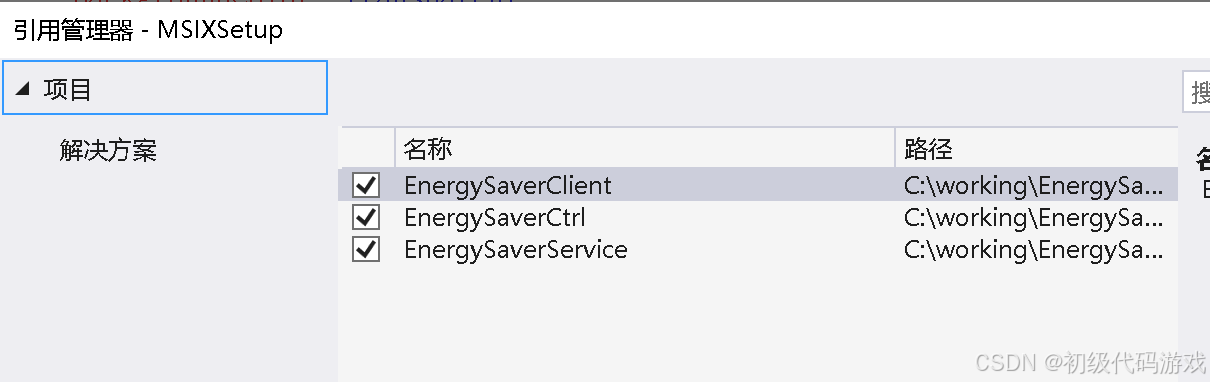 每个项目的输出文件都会放置在软件包里,但是放置的方式是每个项目一个目录的,因此引用项目输出的时候要加上项目名称子目录,如“project1\app1.exe”。