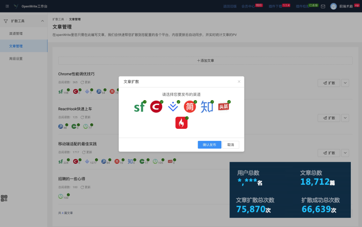 作为互联网人,必须用数据说话,目前 OpenWrite 用户将破 4 位数,总共帮助内容运营者扩散了近 19,000 篇文章。OpenWrite 定位很简单,就是「工具」产品 + 服务,帮助提升内容运营者运营效率。目前产品 2.0 版本,回忆 1.0 版本时,牺牲了无数个周末的时间坚持下来。
