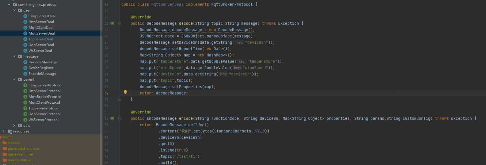 极简接入:让你只关注最核心的消息解析,你只需要在协议包实现相应的消息解析即可完成设备接入。