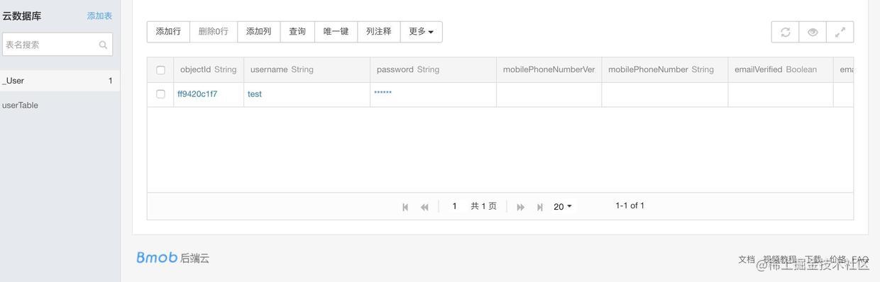 在Bmob后台查看用户表
