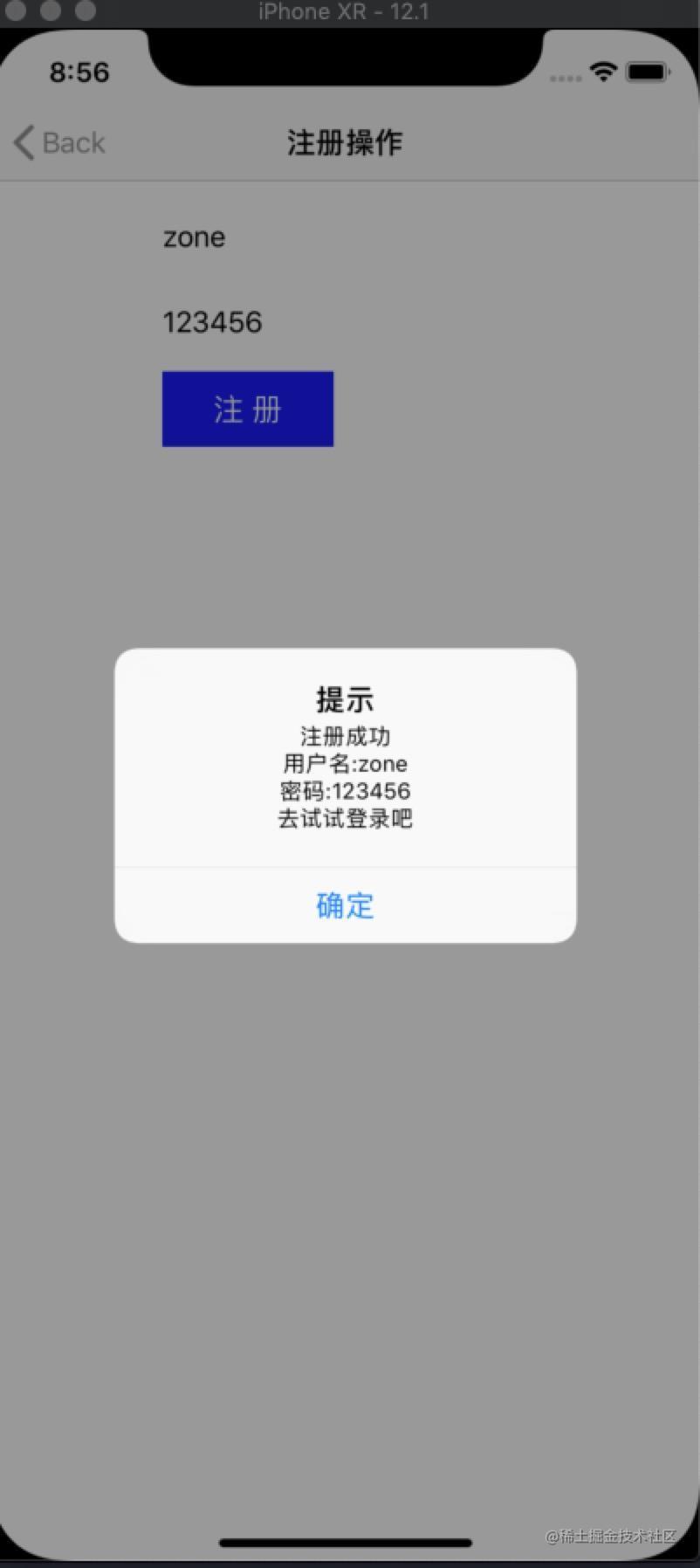 BmobUser *bUser = [[BmobUser alloc] init];[bUser setUsername:self.nameTextField.text];[bUser setPassword:self.passwordTextField.text];[bUser signUpInBackgroundWithBlock:^ (BOOL isSuccessful, NSError *error){if (isSuccessful){NSLog(@"Sign up successfully");NSString *result = [NSString stringWithFormat:@"注册成功\n用户名:%@\n密码:%@\n去试试登录吧",self.nameTextField.text,self.passwordTextField.text];[self showResultInfo:result];} else {NSLog(@"%@",error);[self showResultInfo:@"注册失败,查看控制台信息"];}}];
