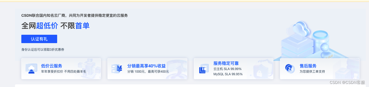 秉承“致力于为IT技术人,成就一亿技术人”的服务理念,CSDN开发云服务开放内测,联合国内知名云厂商,共同为开发者提供价低质优的云服务、丰富的开源项目与文档,帮助中小企业、个人开发者和学生群体一键上云、低价上云、高效上云。