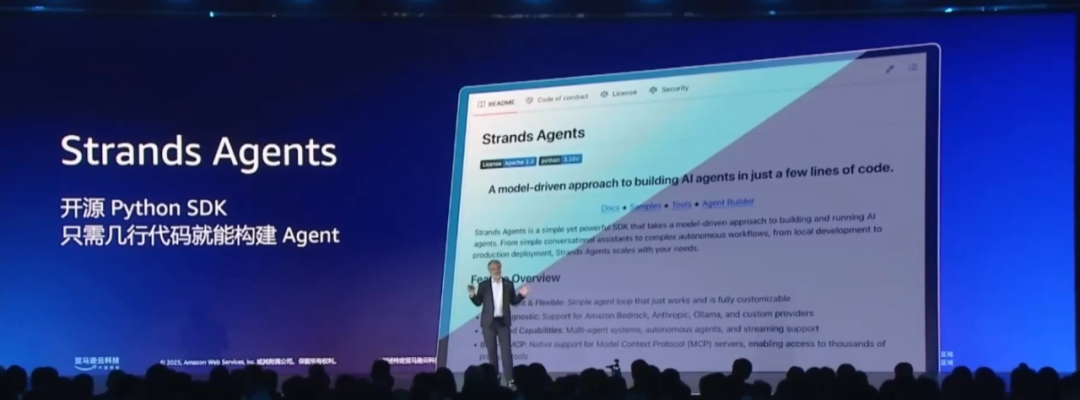 - 对于轻量级任务,Strands Agents 开源框架可以构建出灵活的多智能体应用。