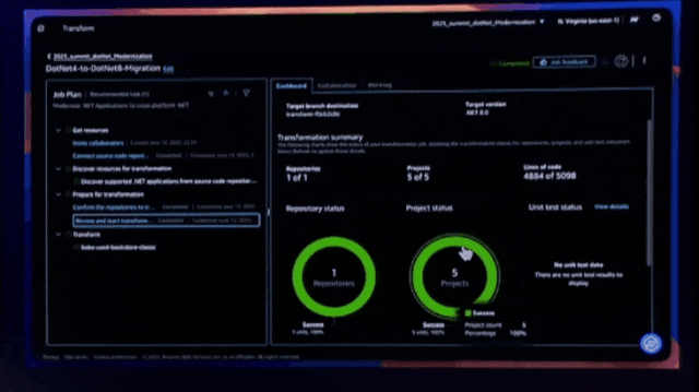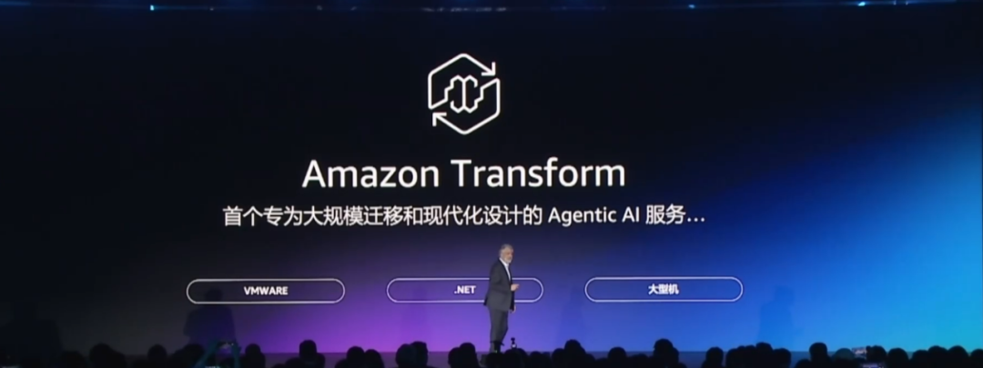 Amazon Transform —— 首个为加速 .NET、大型机和 VMware 工作负载的企业现代化而开发的代理式人工智能服务。Amazon Transform 可以帮助各个组织同时对数百个应用程序进行现代化改造,并保持高质量和控制力。