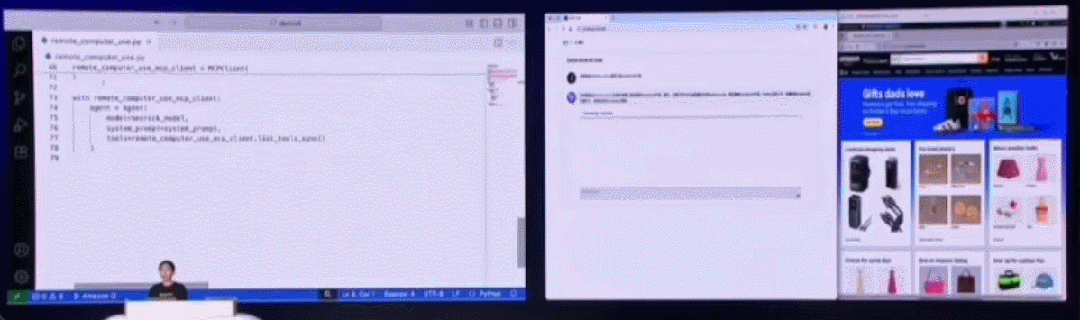 在一些简单任务上,我们可以使用开源的 Strand Agents,由它帮助构建的 AI 采购助手使用亚马逊云科技托管的 Claude 3.7 Sonnet 大模型作为大脑,用户使用自然语言在前端提问,Agent 就能理解用户需求,调出相应的 MCP 工具进行具体操作,浏览网页、筛选、进行推荐并以自然语言的形式返回结果。