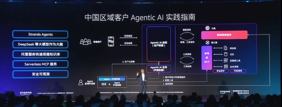 在中国峰会主论坛上,亚马逊云科技正式发布了 Agentic AI 应用实践指南。其中包括智能体开发的基本范式、实践方案的示例,以及对于智能化转型的展望。基于该指导,任何人都可以在亚马逊云科技的平台上构建 AI 应用。