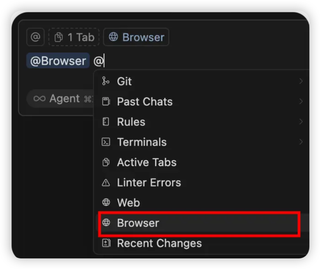 Cursor Browser开关开启后,Agent中就有了这个功能