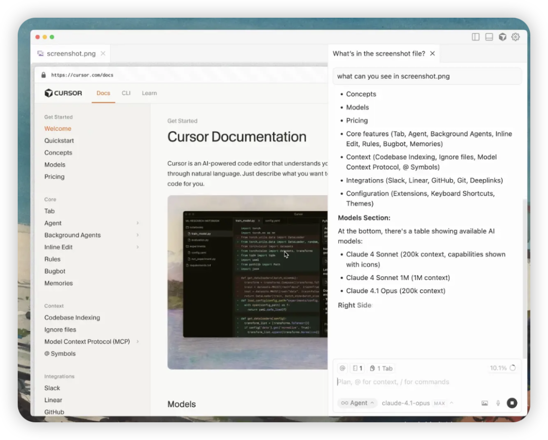 功能描述:Agent 现在可以直接从工作区读取图像文件并纳入上下文理解。