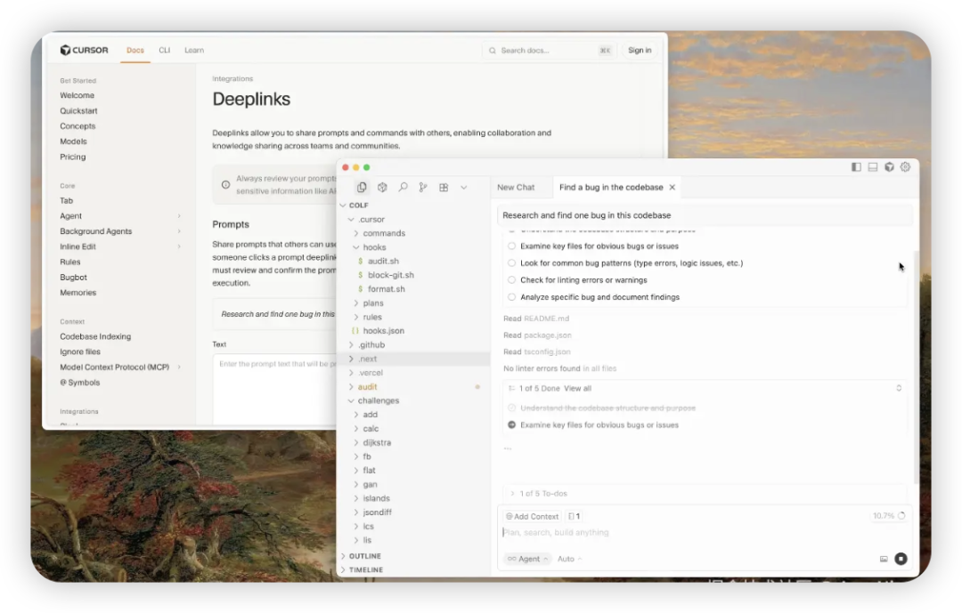 功能描述:面对复杂任务时,Cursor 现在会先制定详细的执行计划,然后再开始实施。这使得 Agent 可以处理更长、更复杂的开发任务。