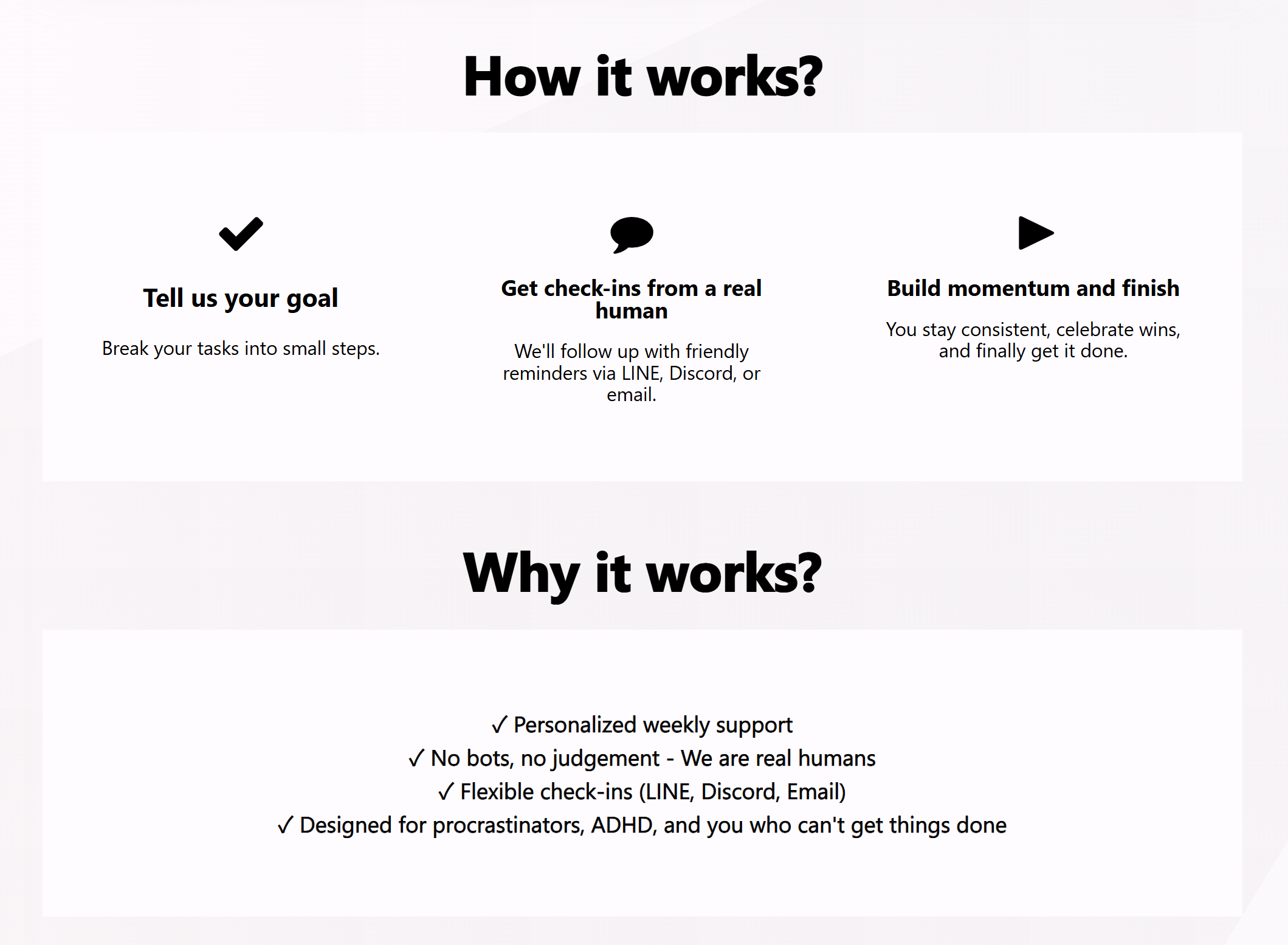 ChillCheck是一款简单的互相监督应用,为患有ADHD、倦怠或长期拖延症的人提供目标分解和人性化的进度检查。