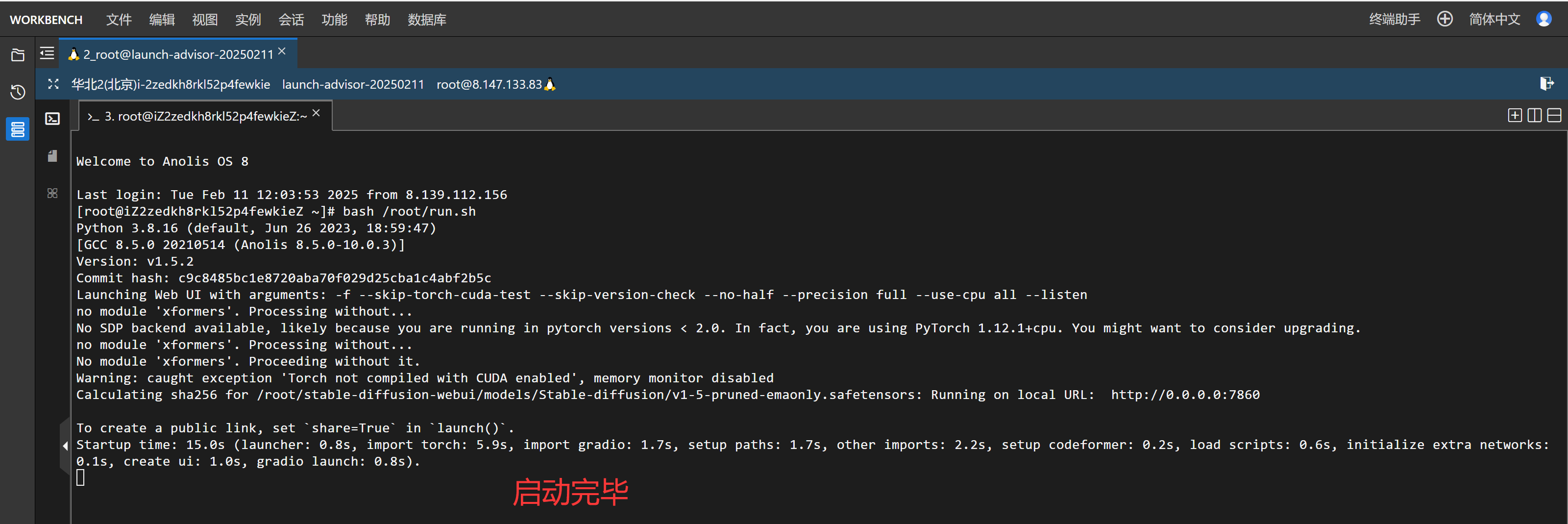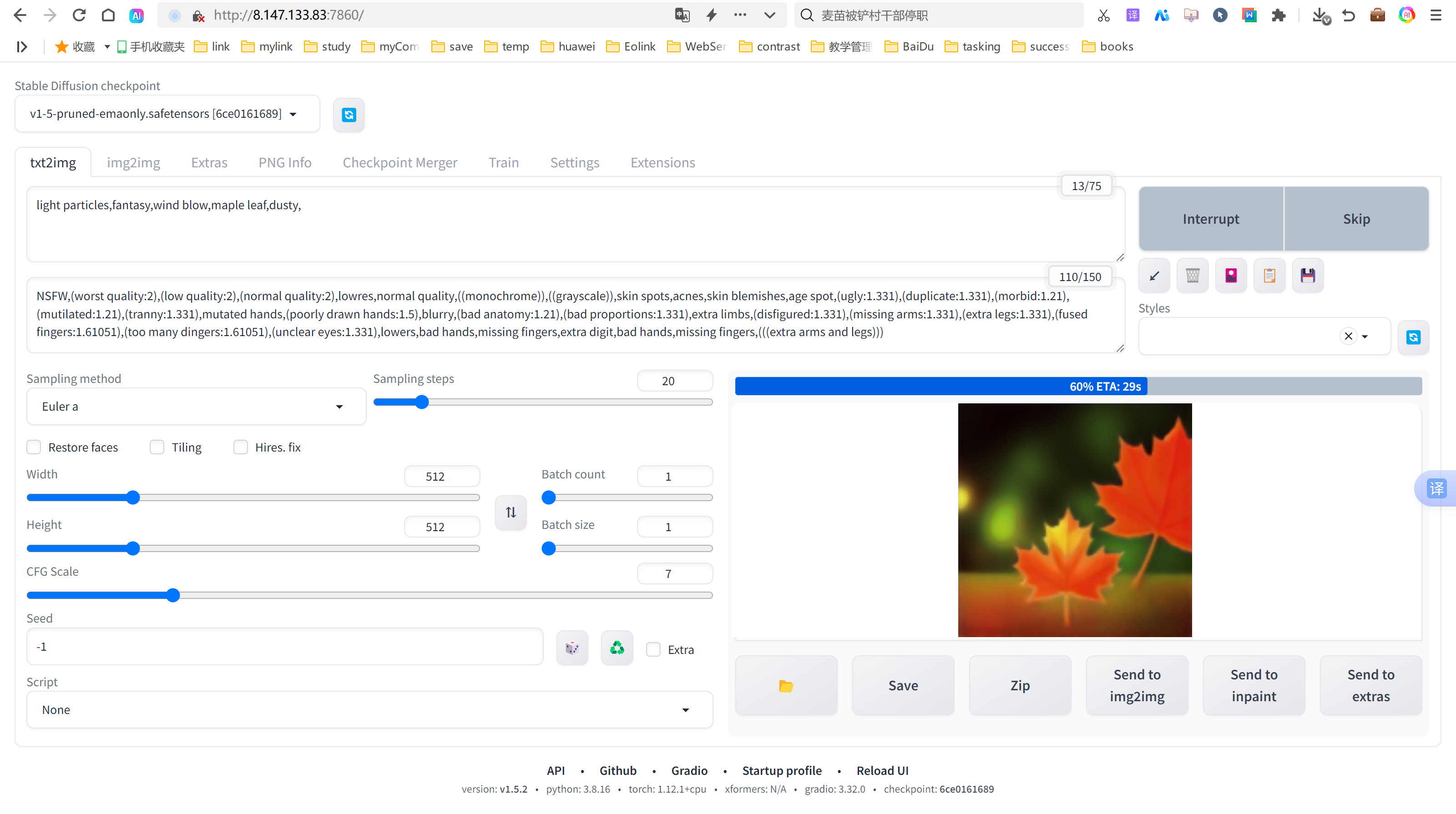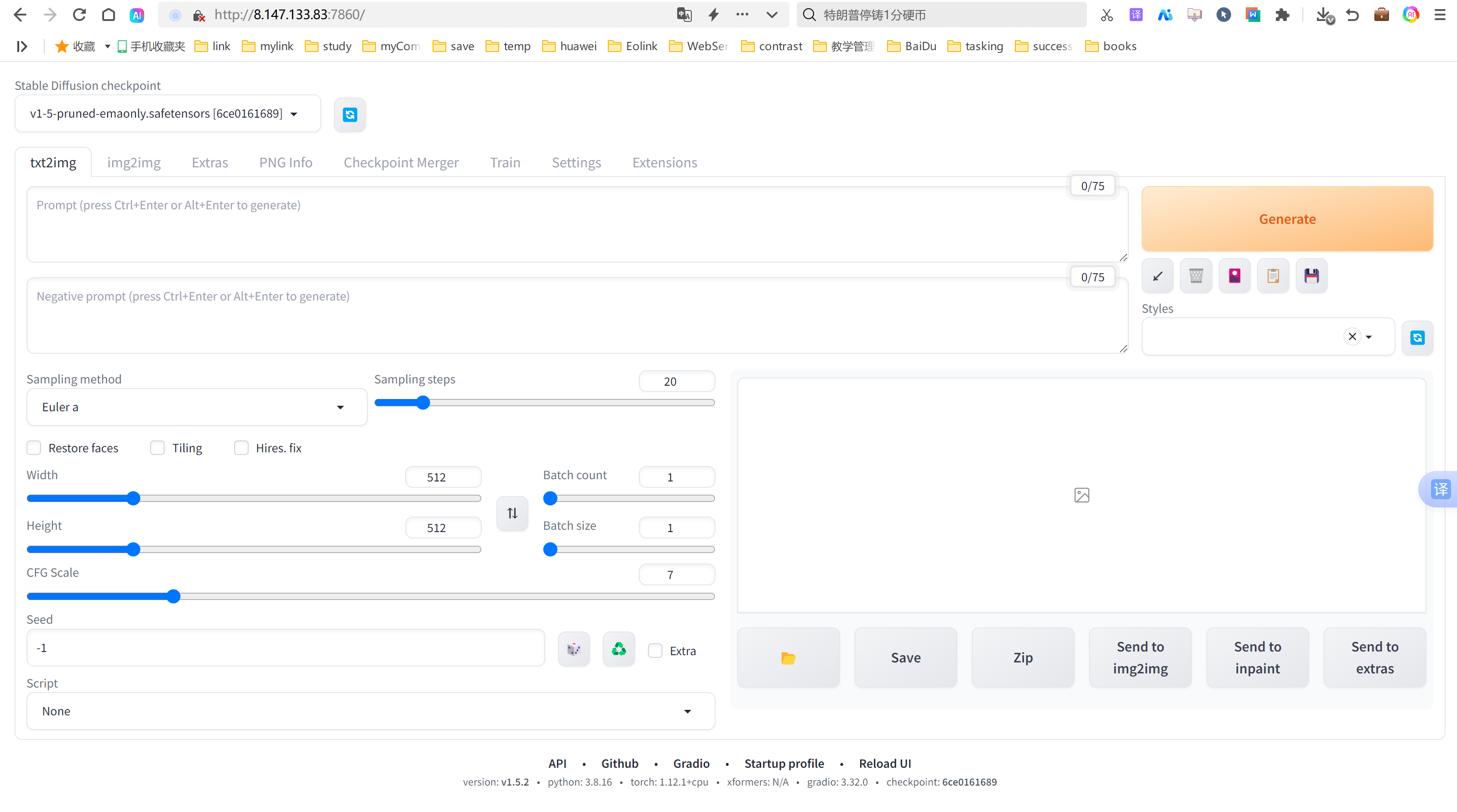 访问路径:在您的浏览器中访问 http://<您的服务器 ip 地址>:7860/,您将会看到如下界⾯。下面是我的访问链接。