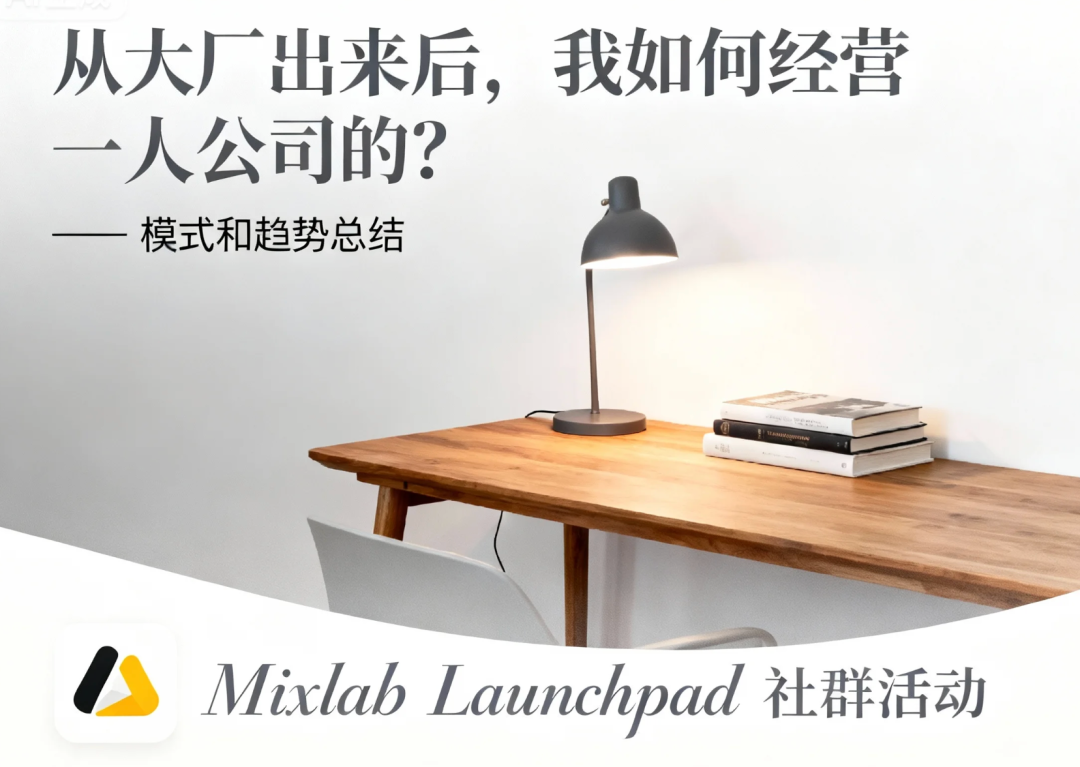 从大厂出来后,我如何经营一人公司的?模式和趋势总结@上海·Mixlab Launchpad 社群活动通知#12月12日晚