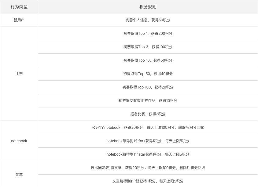 积分由用户在天池平台产生的行为生成,体现用户在天池的活跃度。