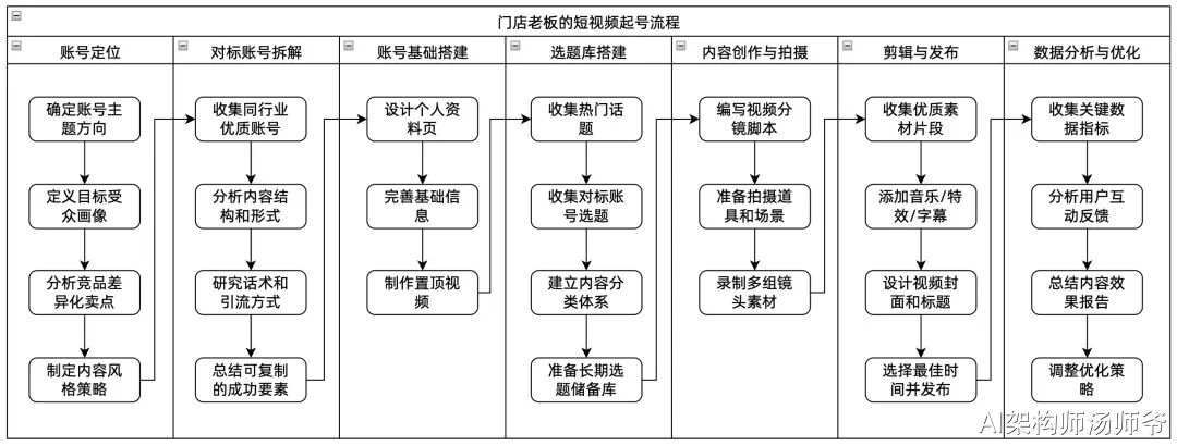 例如,一个门店老板的短视频起号业务流程: