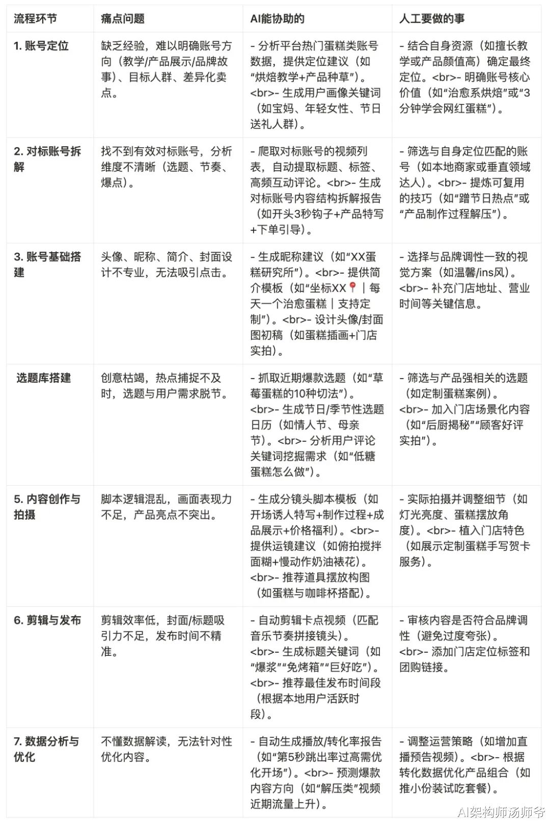 - 账号定位:确定账号主题方向、定义目标受众画像、分析竞品差异化卖点、制定内容风格策略。