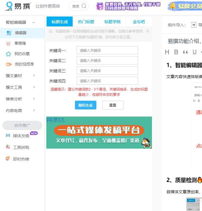 首先,你要选好方向,也就是领域。可以从自身的兴趣爱好决定,也可以从自身的资源着手,一定要是你最容易接触,成本最低,最擅长的项目。自媒体就好比个人创业,要源源不断地输出你的产品,不管是文章还是视频,还是直播,都是你最拿手的才能最快成功。如果你擅长写作,那就选择图文的形式,可以选择的平台有头条号、百家号、公众号、知乎、小红书等,一定要坚持原创,大家可以在创作完对文章质量进行一定的检测。帮组大家快速收获