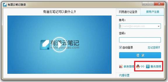 图3 有道云笔记支持QQ账号与腾讯微博账号登录