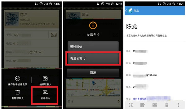 图2 将“脉可寻”中的重要名片分享保存至有道云笔记