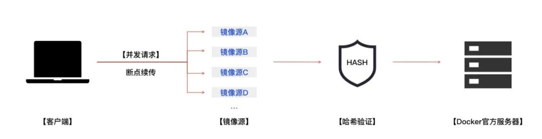 示例:一个 500MB 的镜像层可拆分为 10 个 50MB 块,并行下载速度提升 3-5 倍。