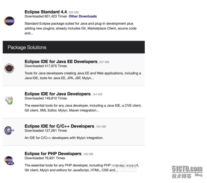 对于刚接触Java开发的初学者,在下载eclipse时,对官网上面提供的各种版本的选择犹豫不决。下面将对常用的几个版本进行介绍。