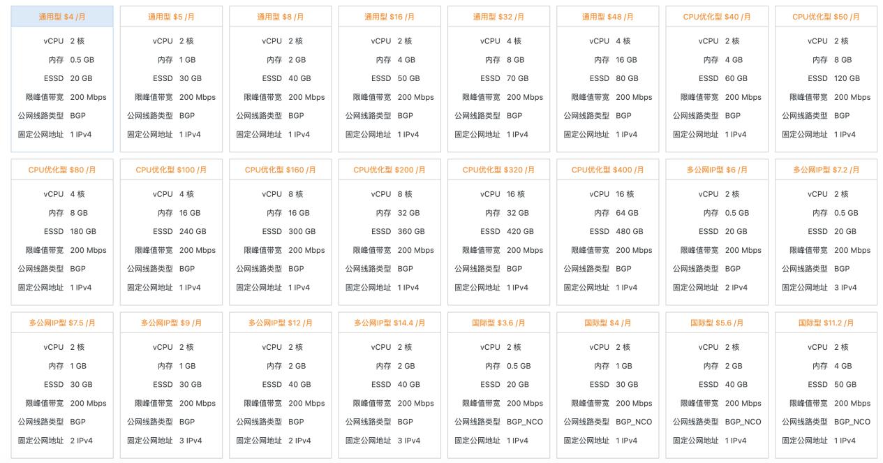 | 42 美元 / 月 | 4 核 | 16GB | 80GB | 200Mbps | 不限 |