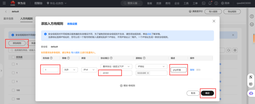 安全组添加对应端口号