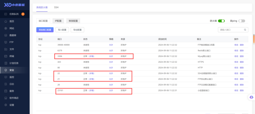 从安全中可以看到防火墙控制的端口号都是安全组允许的。